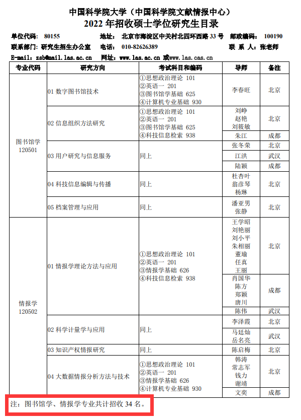 專業(yè)目錄中還公布了圖書館學(xué)、情報(bào)學(xué)專業(yè)擬招生人數(shù)34人。