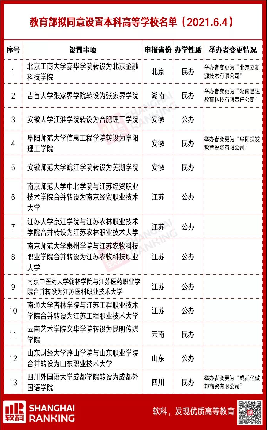 6月4日,教育部發(fā)布《關(guān)于擬同意設(shè)置本科高等學(xué)校的公示》,經(jīng)第七屆全國(guó)高等學(xué)校設(shè)置評(píng)議委員會(huì)專家考察和評(píng)議,并經(jīng)黨組會(huì)審議,擬同意北京工商大學(xué)嘉華學(xué)院等13所獨(dú)立學(xué)院轉(zhuǎn)設(shè)為獨(dú)立設(shè)置的本科學(xué)校,現(xiàn)將學(xué)校名單等信息向社會(huì)公示,一起來(lái)看~