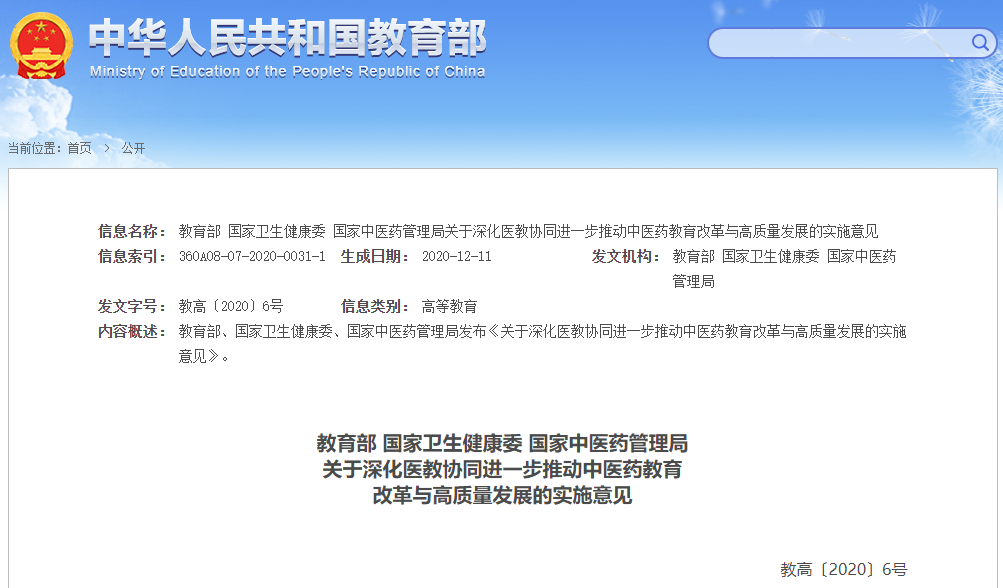 如今,中醫(yī)藥正迎來(lái)發(fā)展的黃金期。2020年12月,《關(guān)于深化醫(yī)教協(xié)同進(jìn)一步推動(dòng)中醫(yī)藥教育改革與高質(zhì)量發(fā)展的實(shí)施意見(jiàn)》重磅發(fā)布,其中明確,建設(shè)100個(gè)左右中醫(yī)藥類一流本科專業(yè)建設(shè)點(diǎn),適度擴(kuò)大中醫(yī)藥類“一流學(xué)科”建設(shè)規(guī)模。2021年3月,“十四五”規(guī)劃中提出,堅(jiān)持中西醫(yī)并重和優(yōu)勢(shì)互補(bǔ),大力發(fā)展中醫(yī)藥事業(yè)。據(jù)國(guó)家中醫(yī)藥局相關(guān)負(fù)責(zé)人在國(guó)新辦發(fā)布會(huì)上透露,預(yù)計(jì)“十四五”期間中央財(cái)政對(duì)中醫(yī)藥重大工程項(xiàng)目的投入會(huì)比“十三五”翻一番。前不久習(xí)總書(shū)記在河南考察時(shí)也重點(diǎn)提到,要發(fā)展中醫(yī)藥,注重用現(xiàn)代科學(xué)解讀中醫(yī)藥學(xué)原理,走中西醫(yī)結(jié)合的道路。