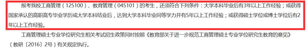 2.大學(xué)本科畢業(yè)后有3年以上工作經(jīng)驗(yàn)的人員;或獲得國(guó)家承認(rèn)的高職高專畢業(yè)學(xué)歷或大學(xué)本科結(jié)業(yè)后,符合招生單位相關(guān)學(xué)業(yè)要求,達(dá)到大學(xué)本科畢業(yè)同等學(xué)力并有5年以上工作經(jīng)驗(yàn)的人員;或獲得碩士學(xué)位或博士學(xué)位后有2年以上工作經(jīng)驗(yàn)的人員。