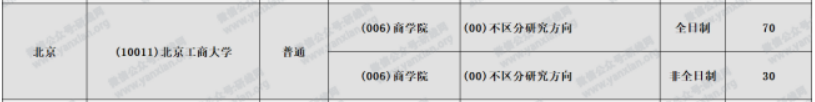 北京工商大學(xué)2021年會(huì)計(jì)專碩全日制計(jì)劃招生70人,非全日制計(jì)劃招生30人