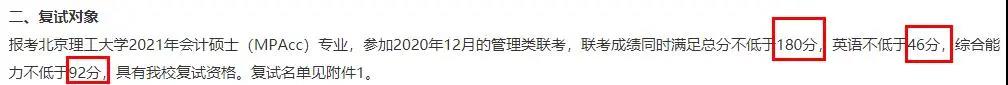 北京理工大學(xué)2021年會(huì)計(jì)專碩復(fù)試分?jǐn)?shù)線為180/92/46