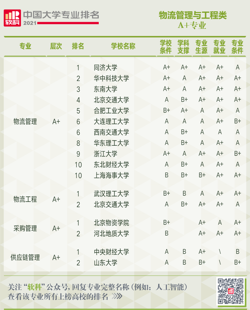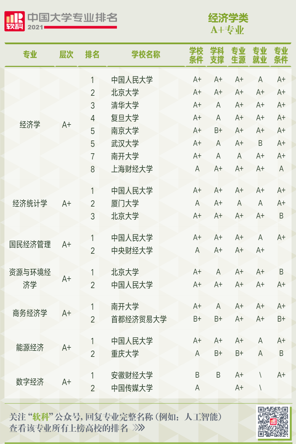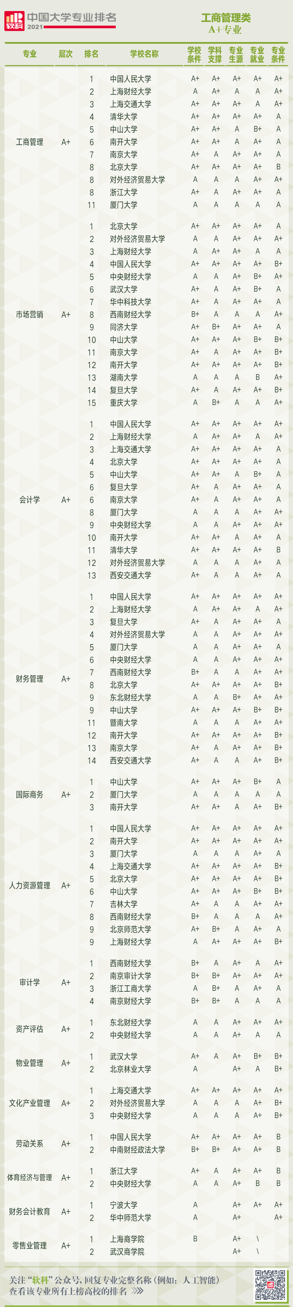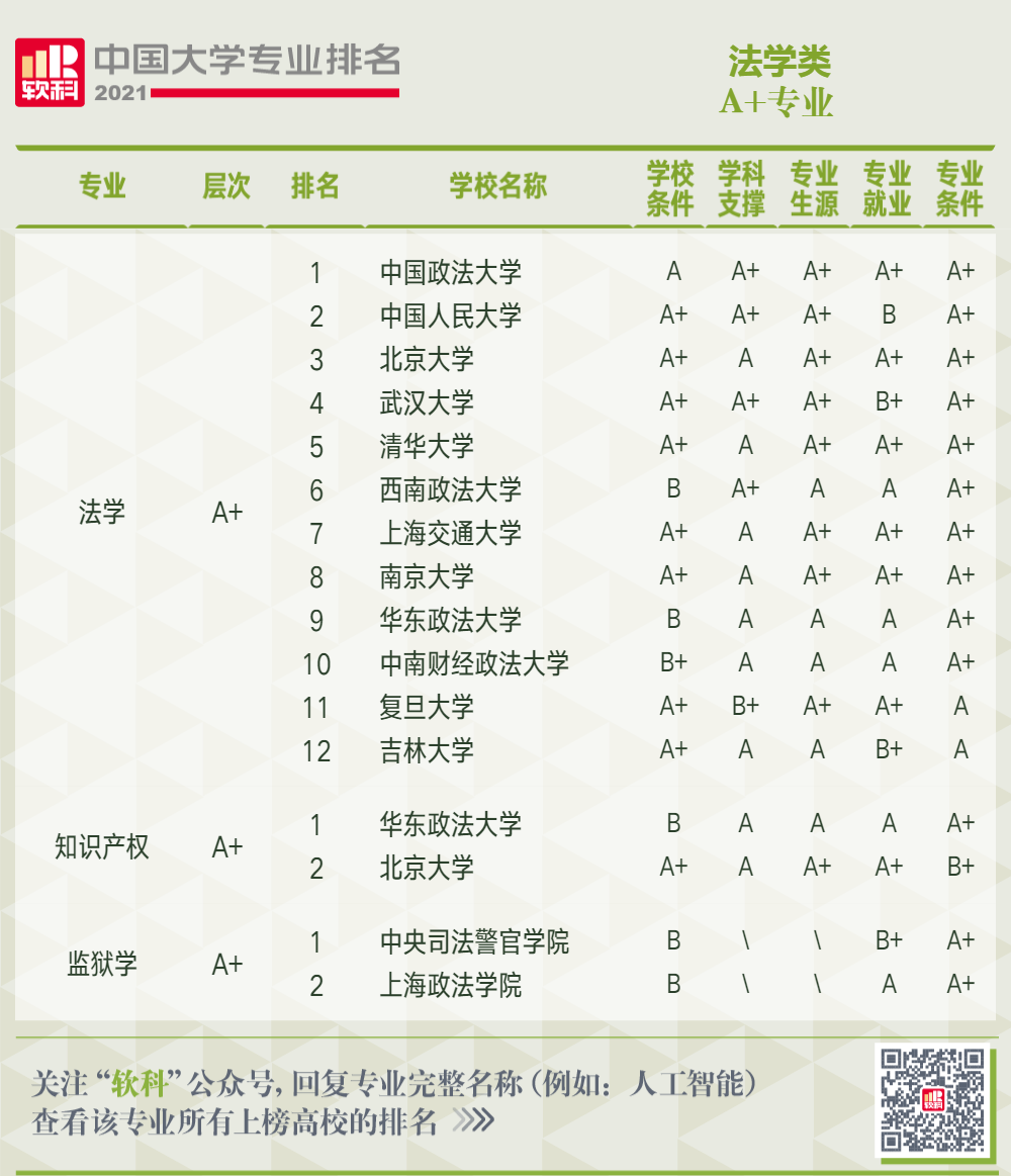 以下是2021軟科中國大學(xué)專業(yè)排名509個專業(yè)的A+高校。