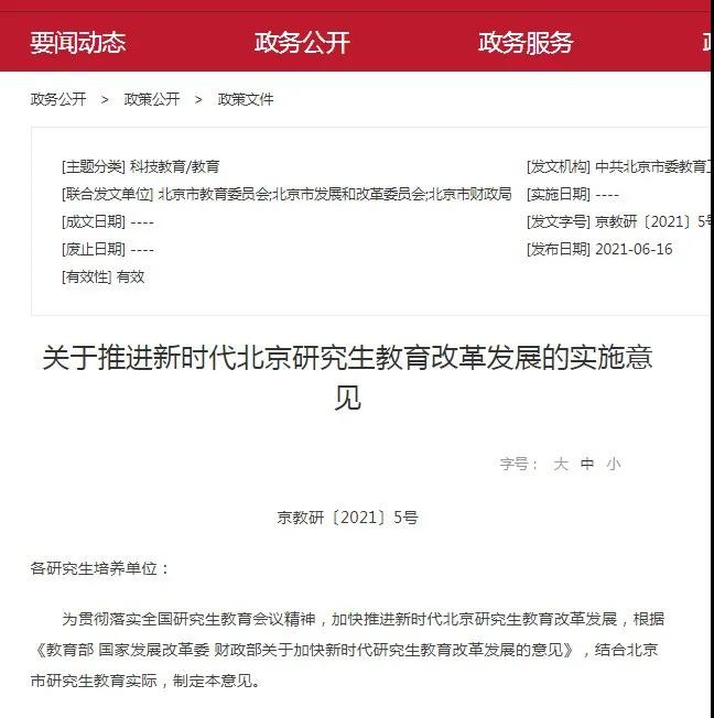《關(guān)于推進(jìn)新時(shí)代北京研究生教育改革發(fā)展的實(shí)施意見(jiàn)》