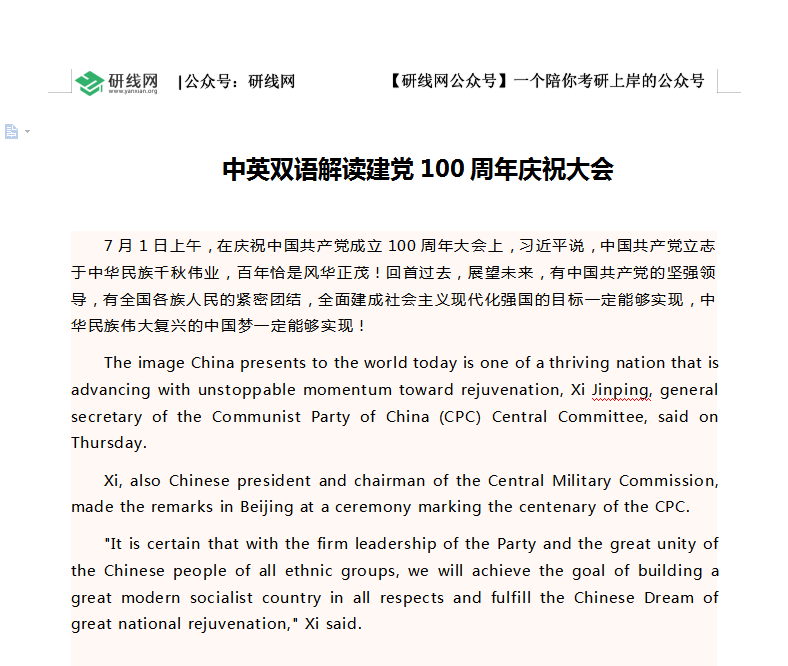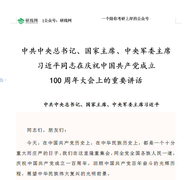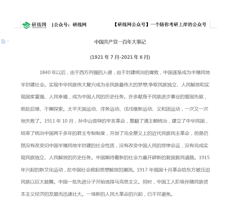 研線網(wǎng)特地整理了百年建黨相關考研政治以及