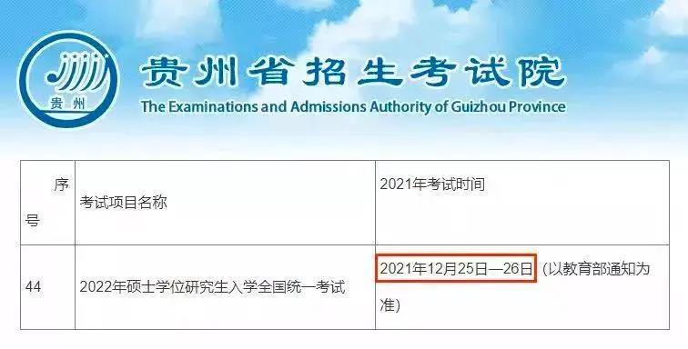 至于具體考試時間,還沒確定,不過之前貴州省招生考試院發(fā)布《2021年貴州省招生考試院各項考試時間安排》,其中提到了考研時間安排,在2021年12月25日-26日,可以做個參考,當然還是要以具體通知為準。