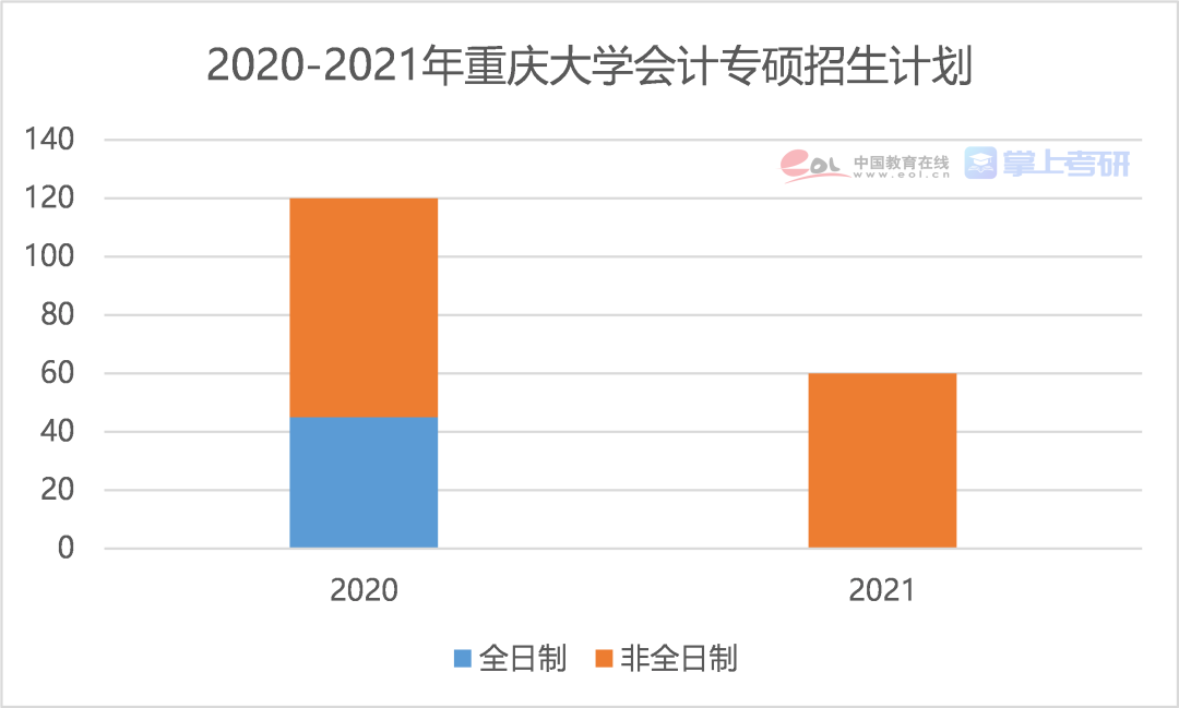 會(huì)計(jì)專碩在2020年計(jì)劃招收全日制45人、非全日制75人,2021年取消全日制招生,招收非全日制60人。