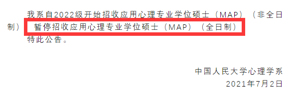 我系自2022級開始招收應(yīng)用心理專業(yè)學(xué)位碩士(MAP)(非全日制),暫停招收應(yīng)用心理專業(yè)學(xué)位碩士(MAP)(全日制)。