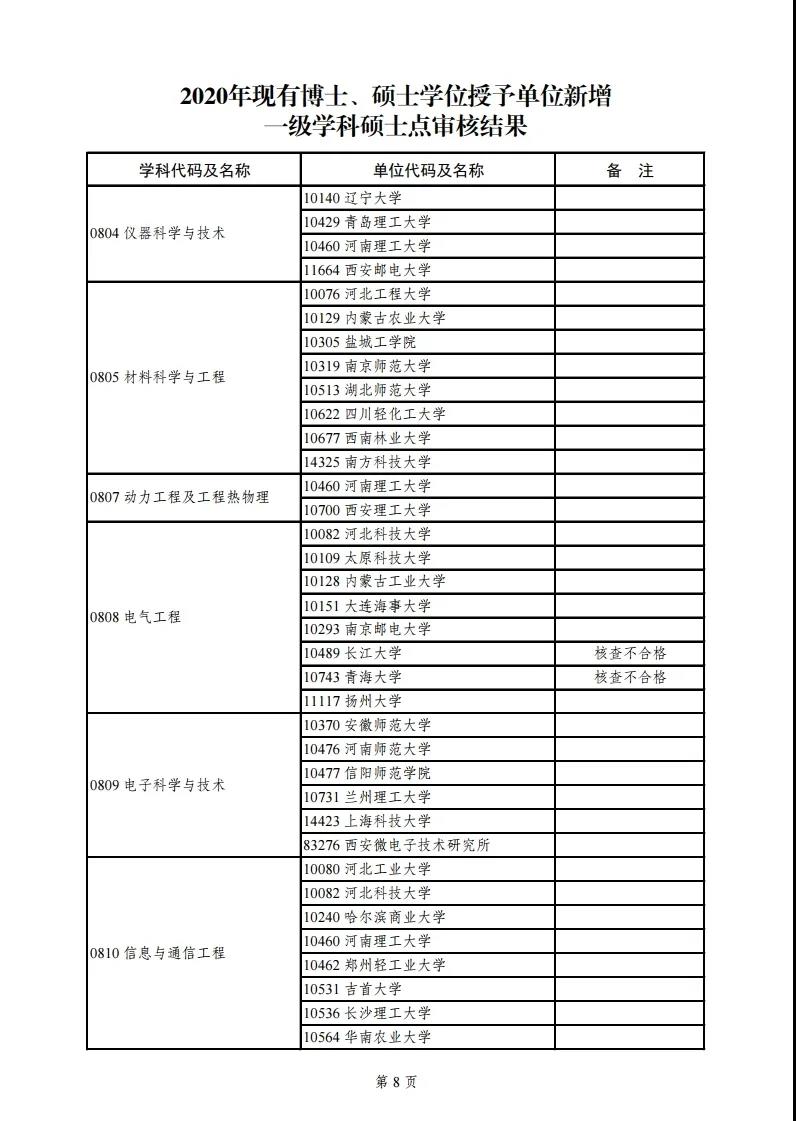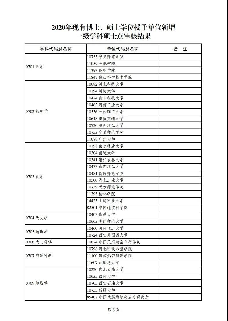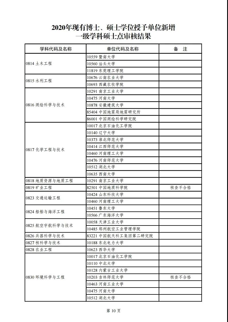 2020年學(xué)位授權(quán)審核結(jié)果公示名單如下: