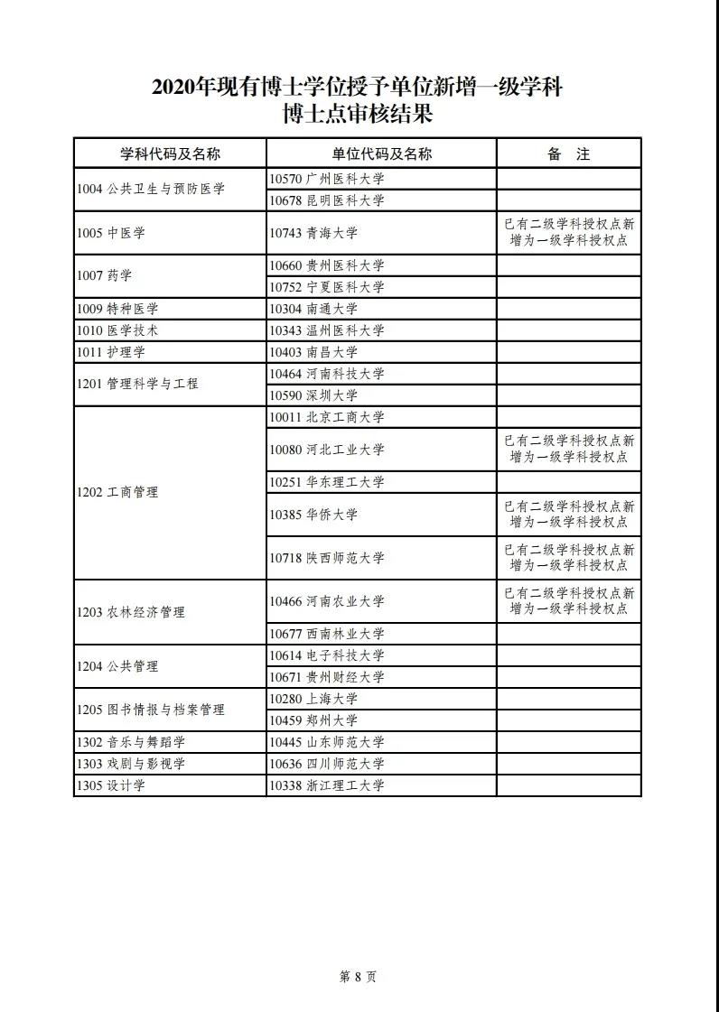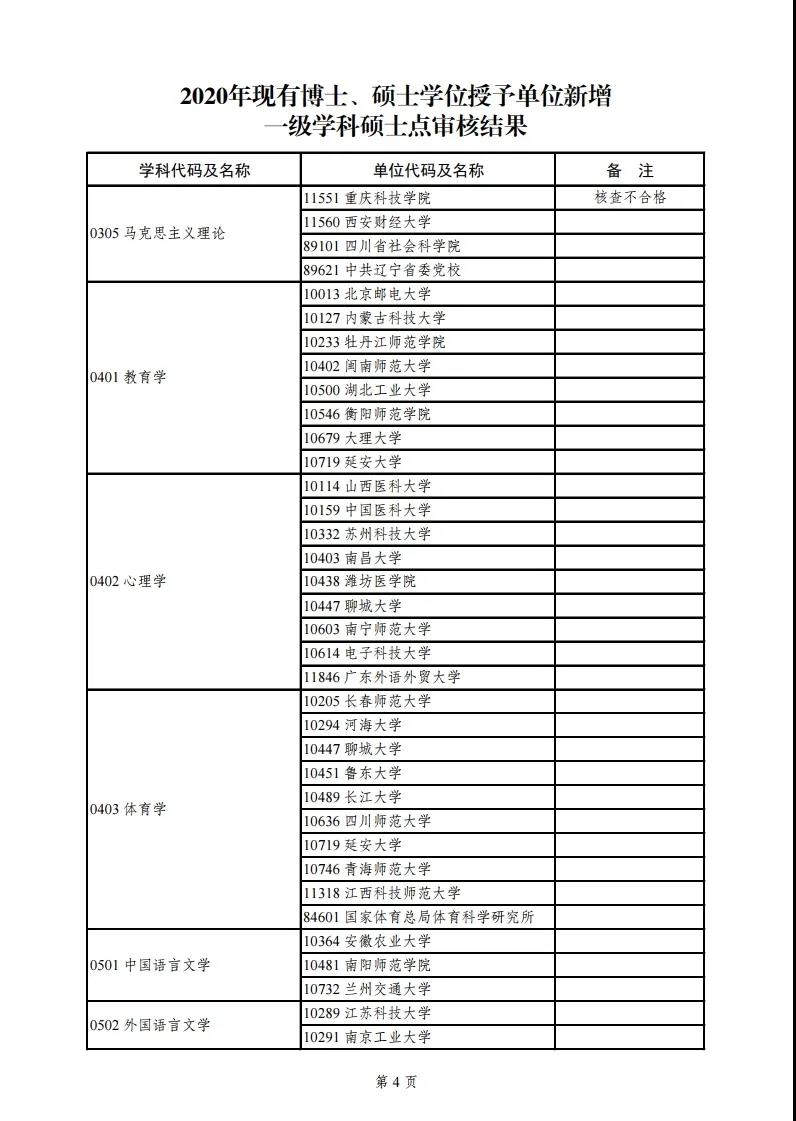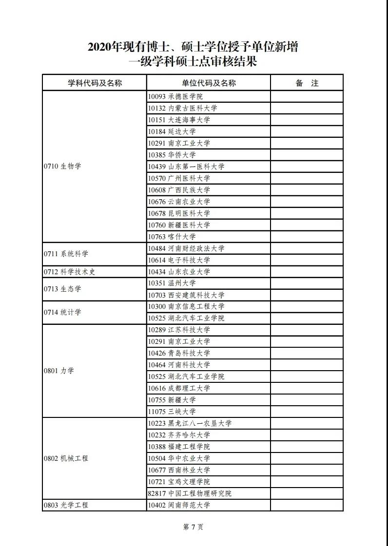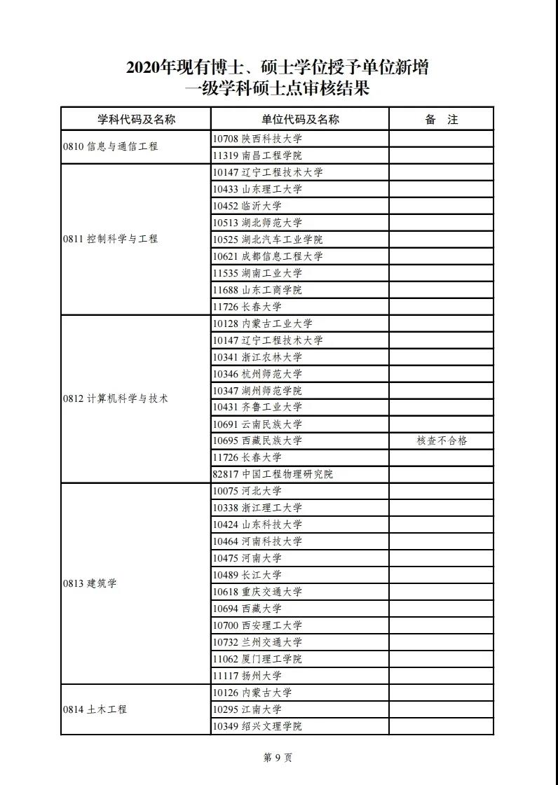 2020年學(xué)位授權(quán)審核結(jié)果公示名單如下: