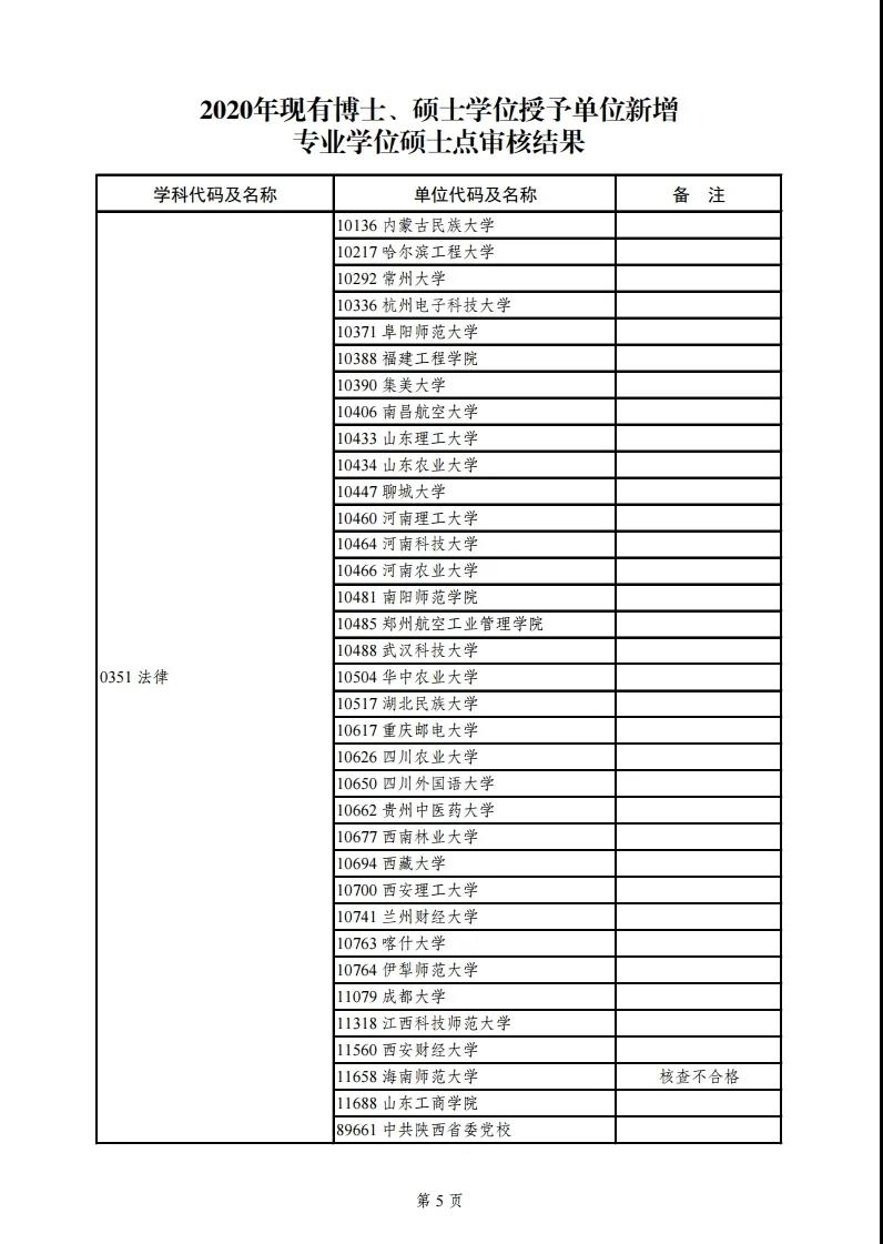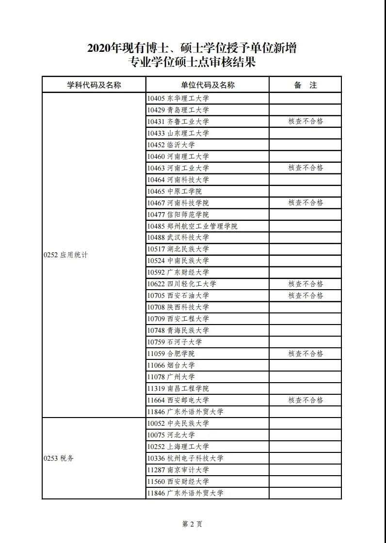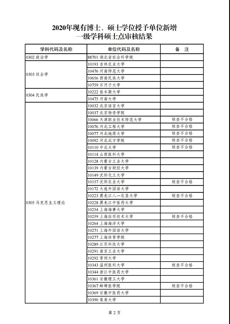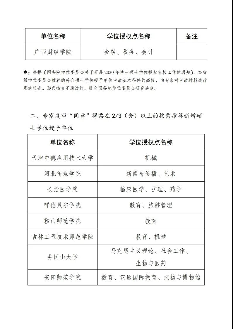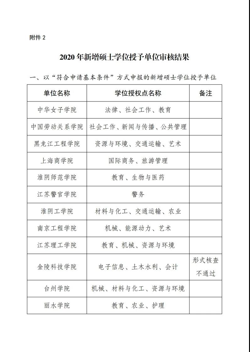 2.2020年新增碩士學(xué)位授予單位審核結(jié)果