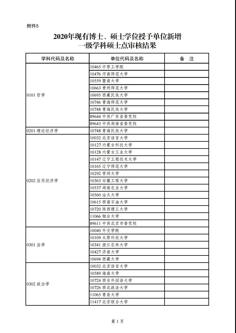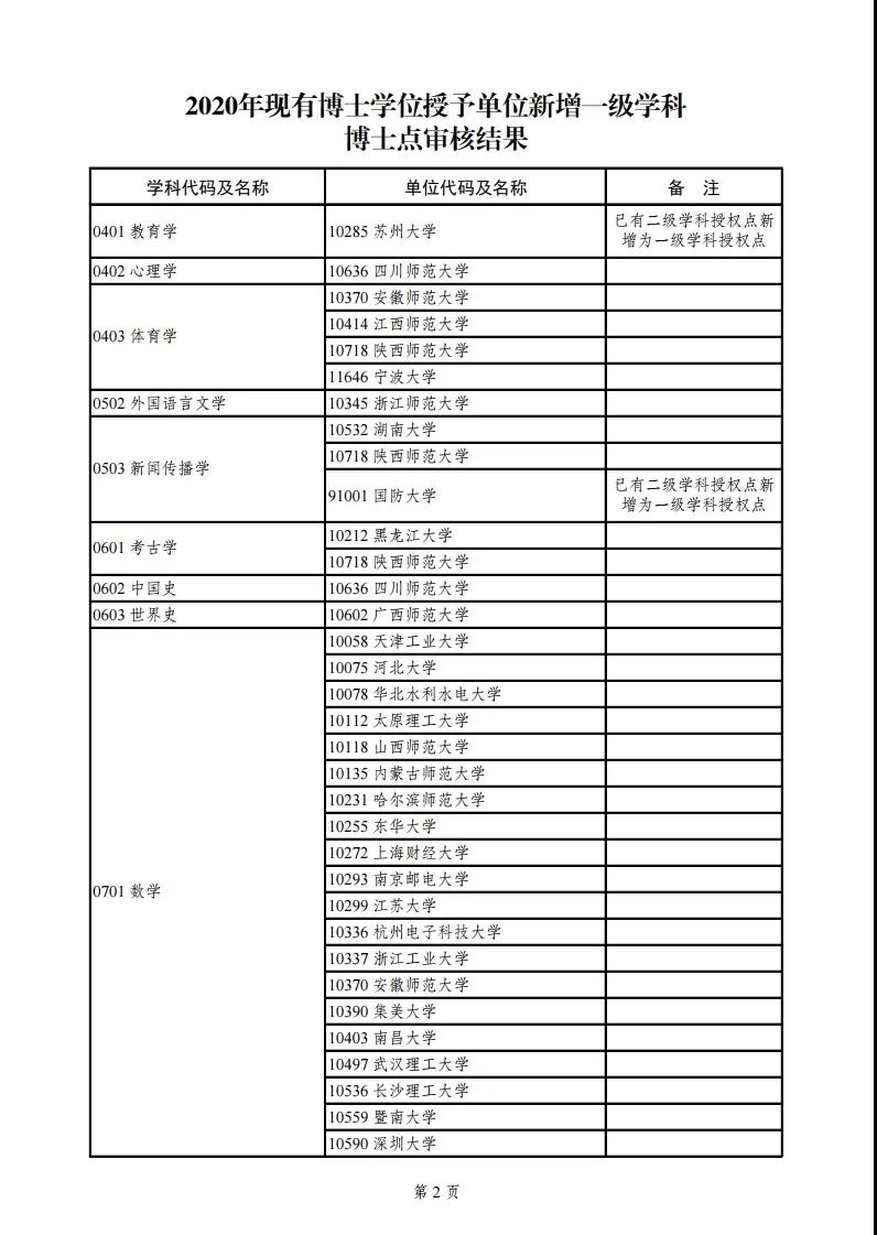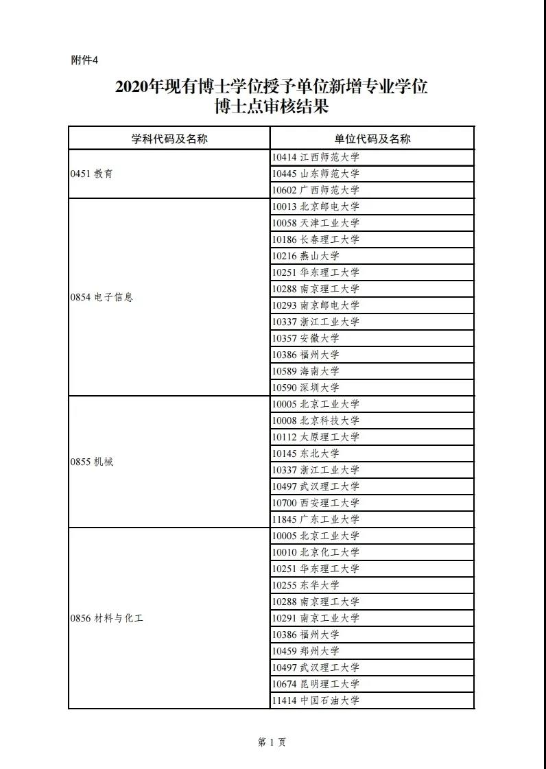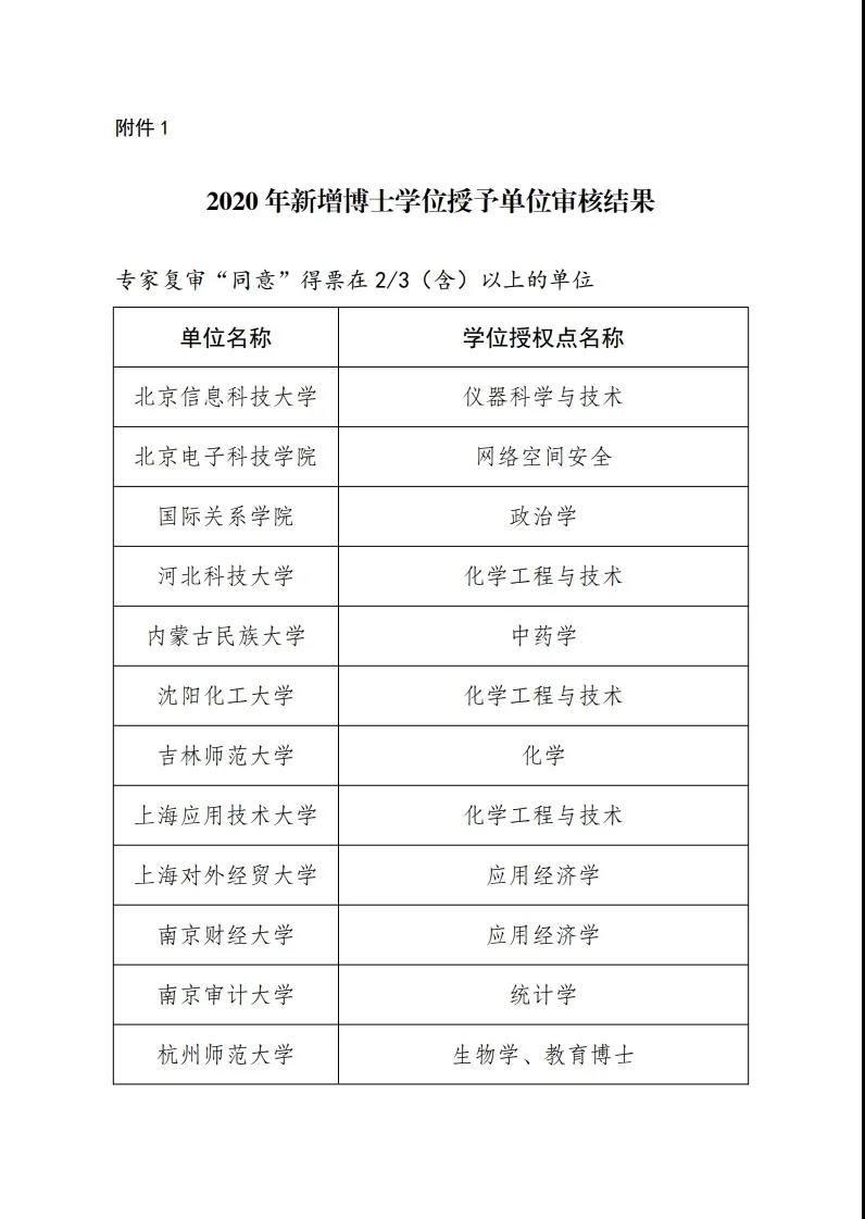 1.2020年新增博士學(xué)位授予單位審核結(jié)果