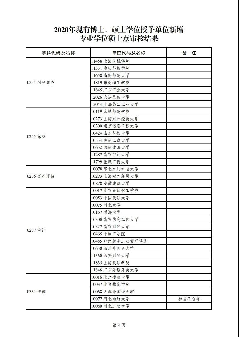 4.2020年現(xiàn)有博士學(xué)位授予單位新增專業(yè)學(xué)位博士點(diǎn)審核結(jié)果