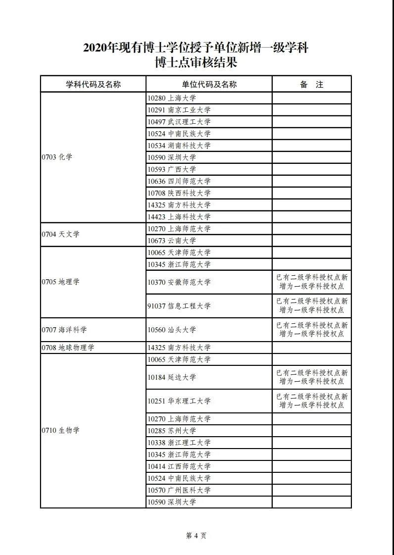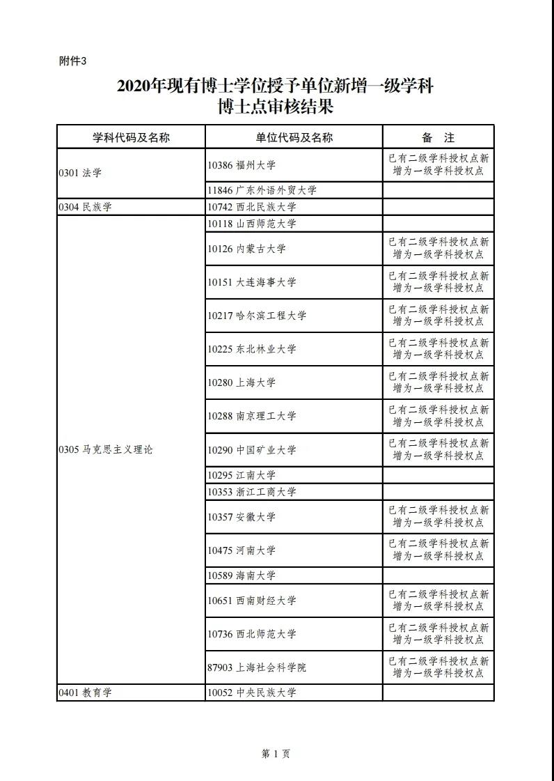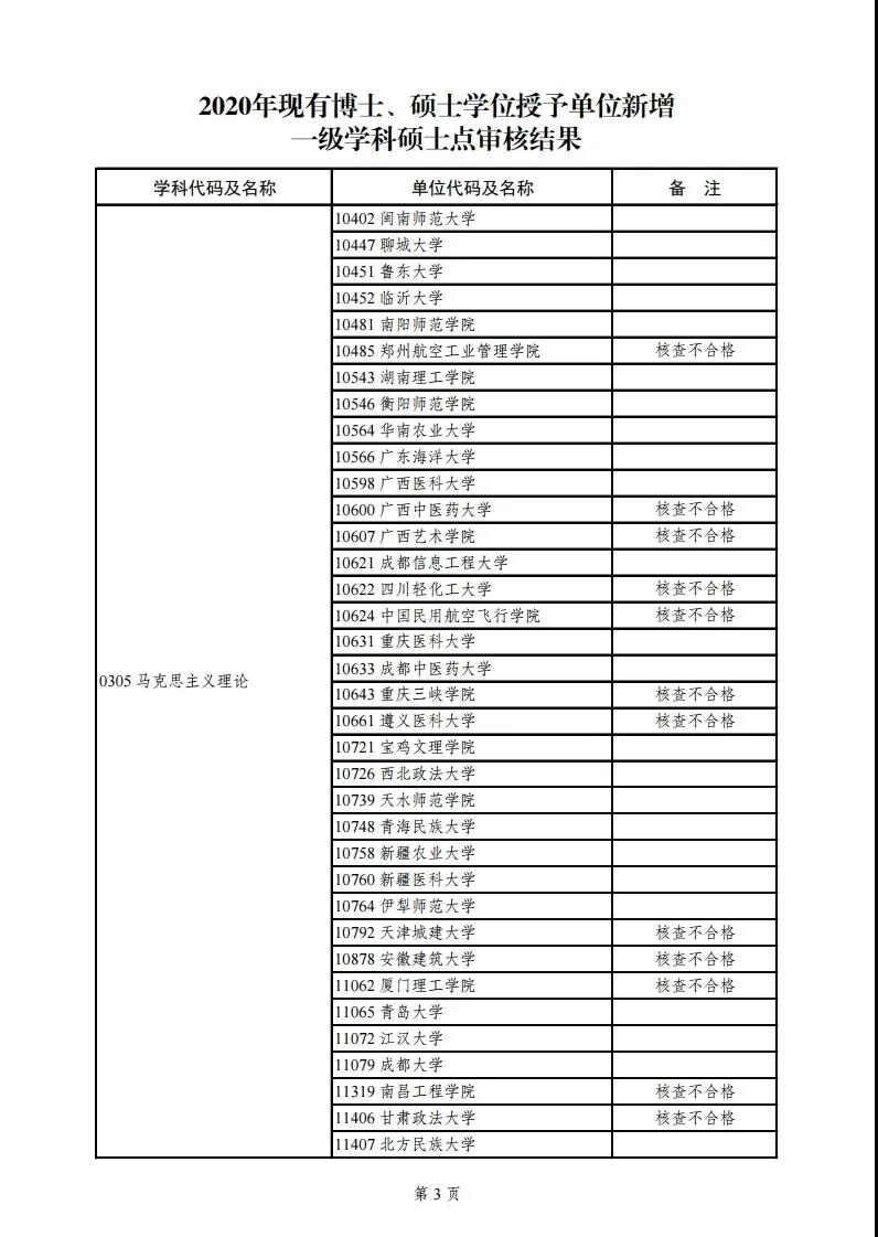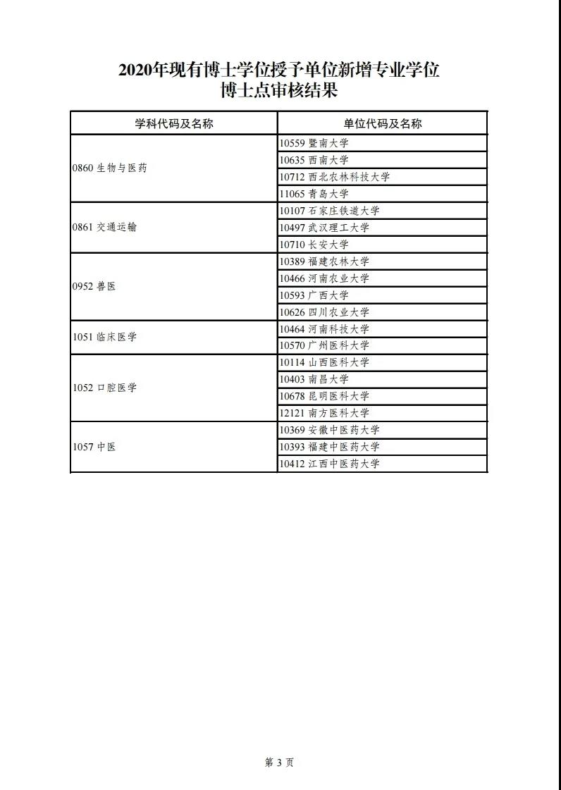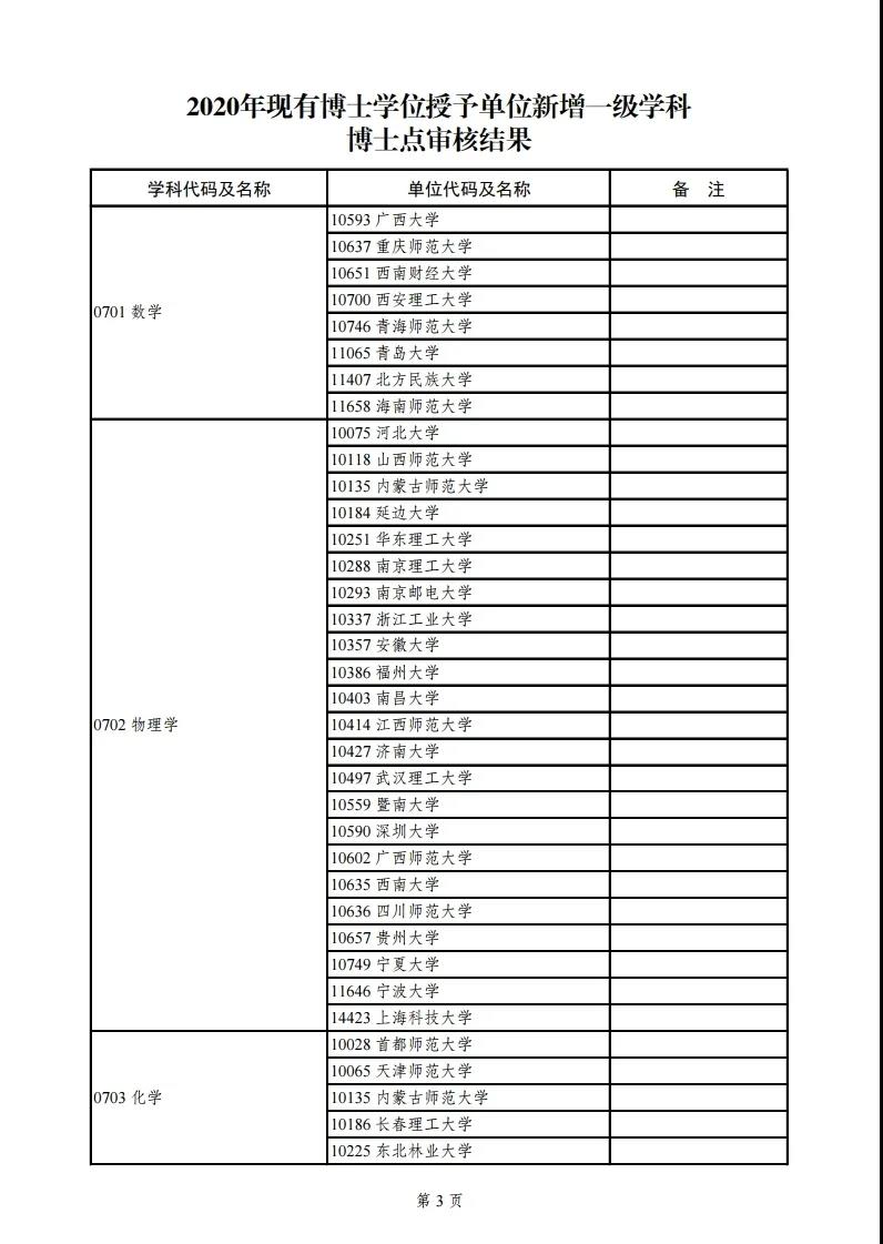 3.2020年現(xiàn)有博士學(xué)位授予單位新增一級(jí)學(xué)科博士點(diǎn)審核結(jié)果