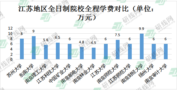 江蘇地區(qū)會計碩士全日制的全程學費主要集中在5-8萬之間,非全日制的全程學費在7-9萬之間的院校居多,高性價比院校推薦: