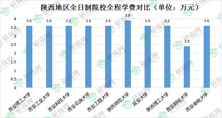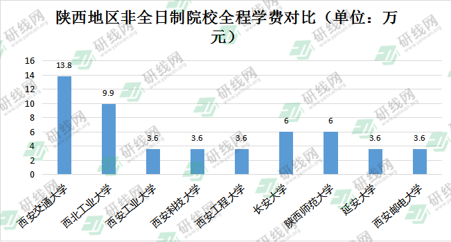 陜西地區(qū)全日制院校全程學費相差不大,最高3.9萬,最低2.4萬。非全日制學費差距較大,高性價比院校推薦:
