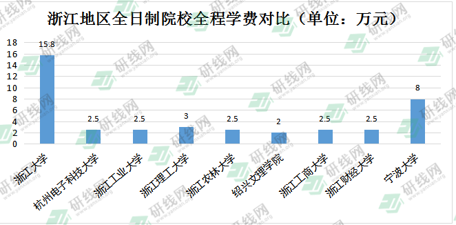 浙江地區(qū)會計碩士全日制的全程學費主要集中在2-3萬之間,最高和最低全程學費相差13.8萬,相差較大,高性價比院校推薦: