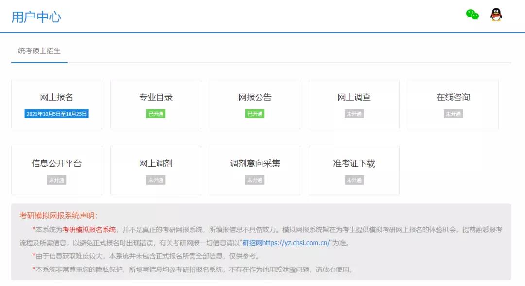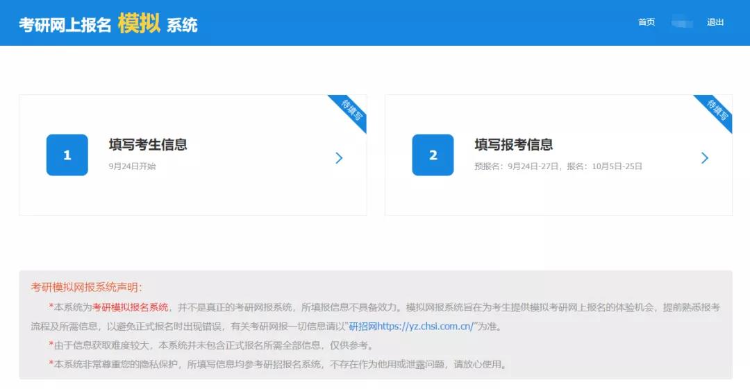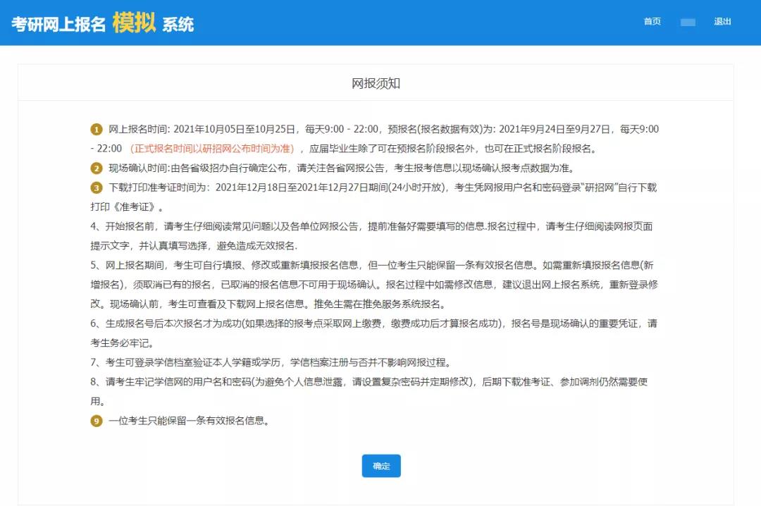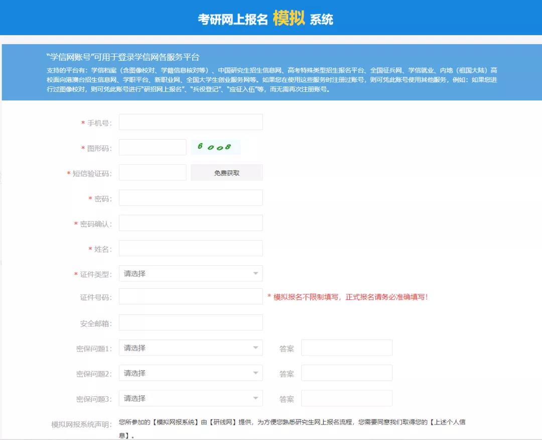 *本系統(tǒng)為模擬報(bào)名系統(tǒng),旨在為考生提供模擬考研網(wǎng)上報(bào)名的機(jī)會(huì),提前熟悉報(bào)考流程及所需信息,以避免正式報(bào)名時(shí)出現(xiàn)錯(cuò)誤。