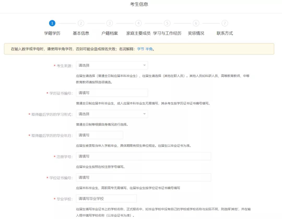 (2)信息填報(bào)。信息填報(bào)很關(guān)鍵,如果信息有誤,是沒有辦法參加考試的,所以關(guān)于要求中的那些公告,大家都要仔細(xì)閱讀,放在心上。