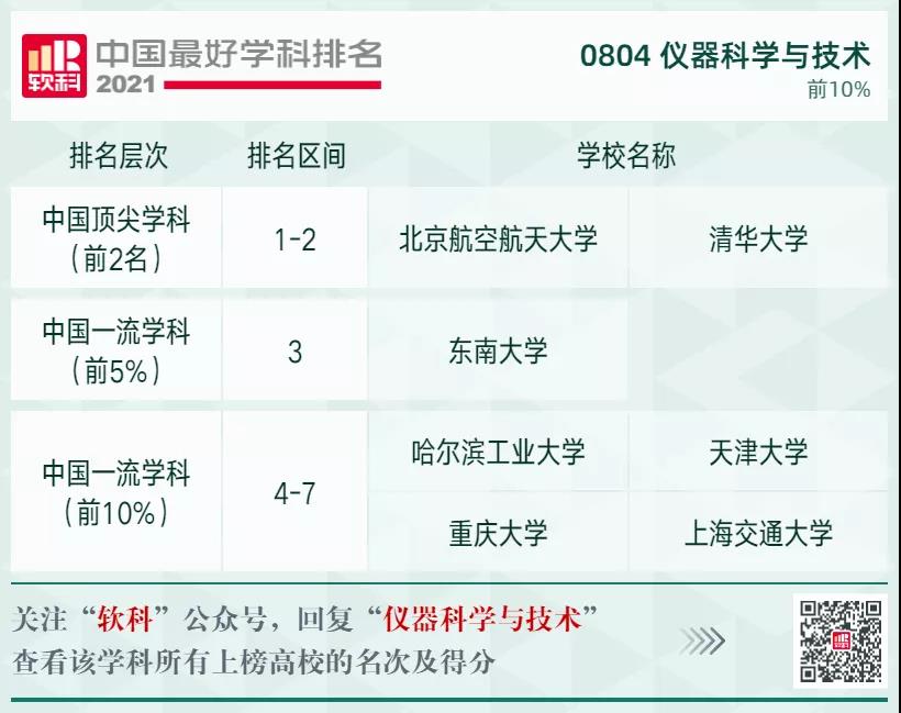儀器科學(xué)與技術(shù)學(xué)科排名前10%的高校: