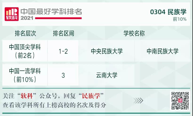 民族學(xué)學(xué)科排名前10%的高校: