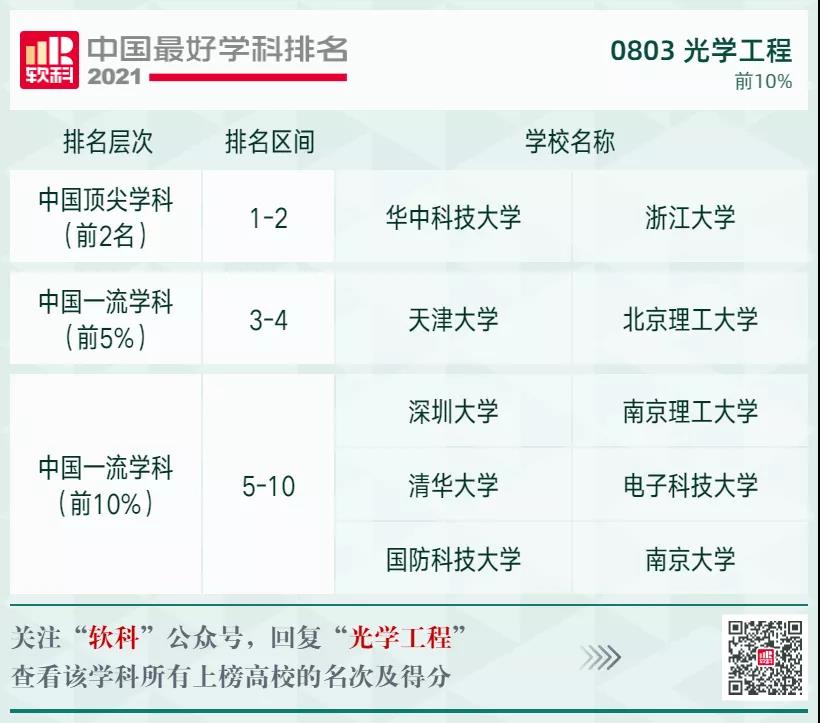 光學(xué)工程學(xué)科排名前10%的高校: