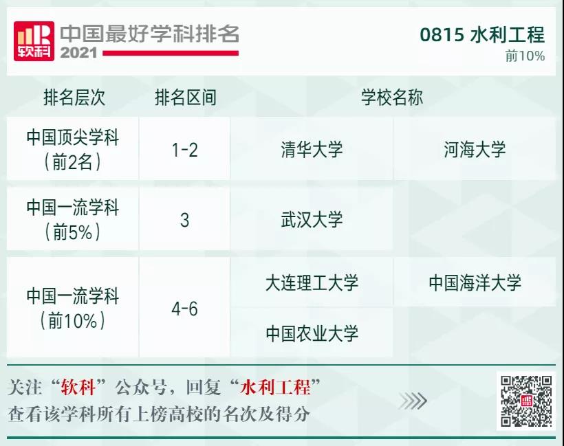 水利工程學(xué)科排名前10%的高校: