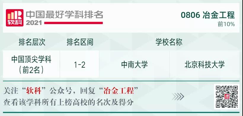 冶金工程學(xué)科排名前10%的高校: