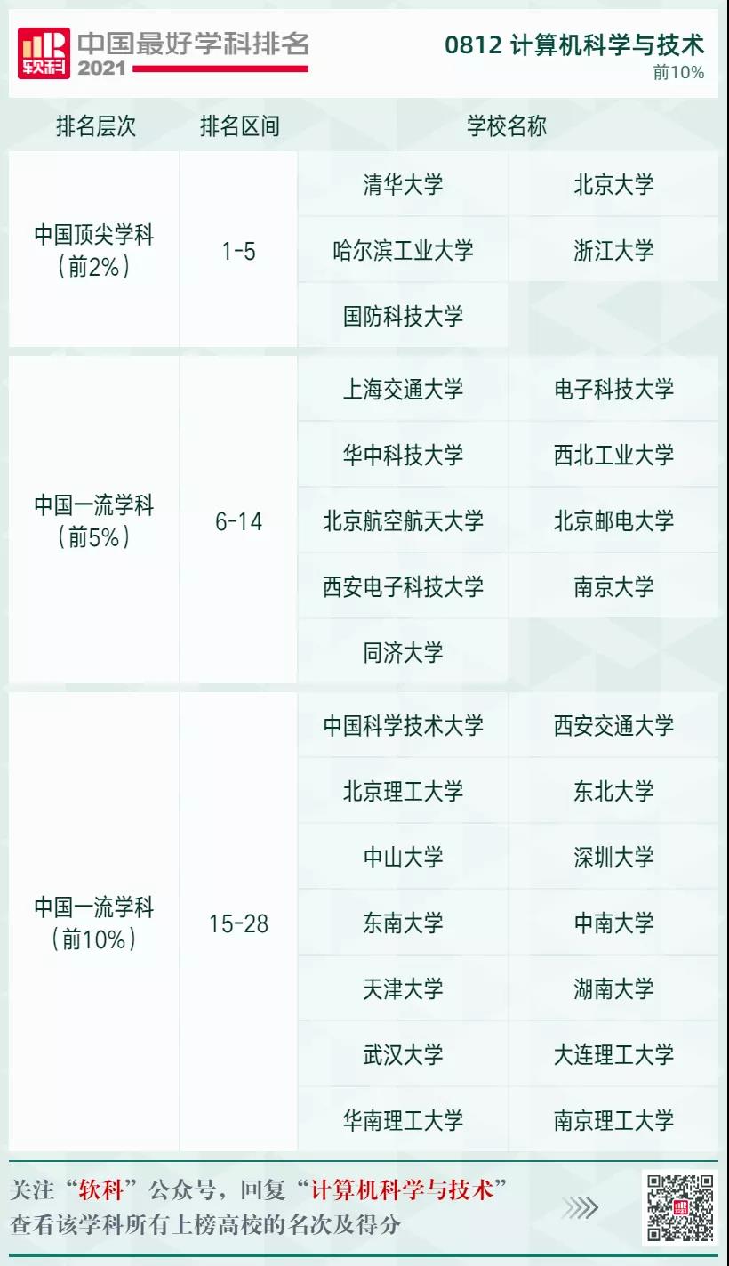計算機科學(xué)與技術(shù)學(xué)科排名前10%的高校: