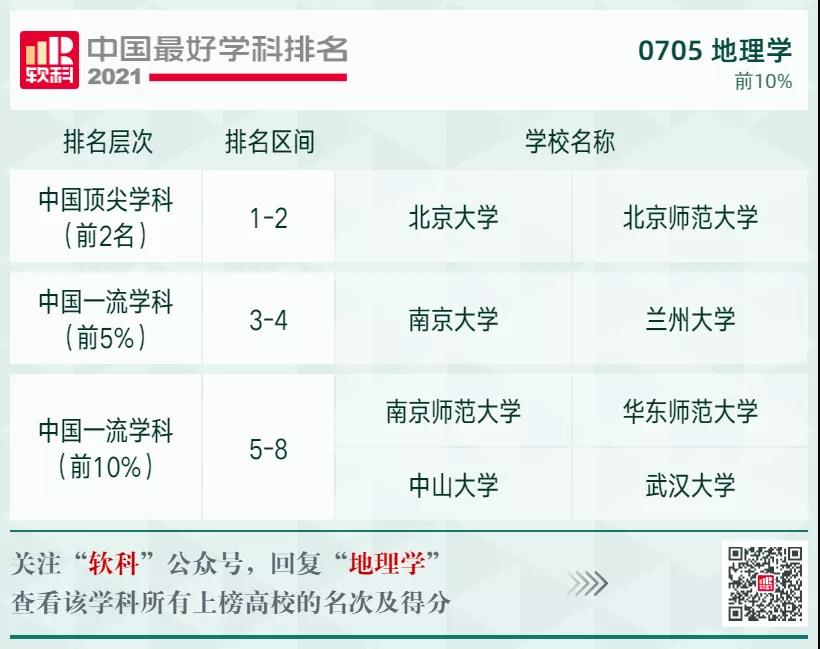 地理學(xué)學(xué)科排名前10%的高校: