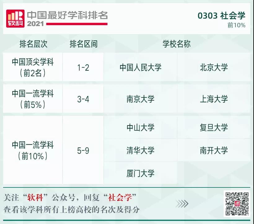 社會學(xué)學(xué)科排名前10%的高校: