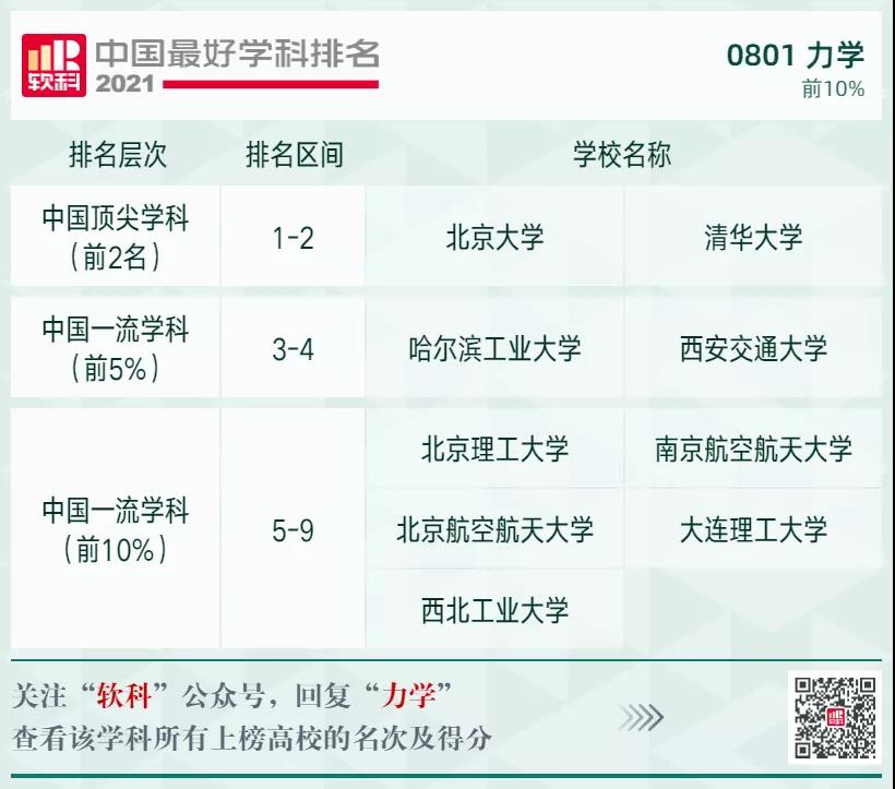 力學(xué)學(xué)科排名前10%的高校: