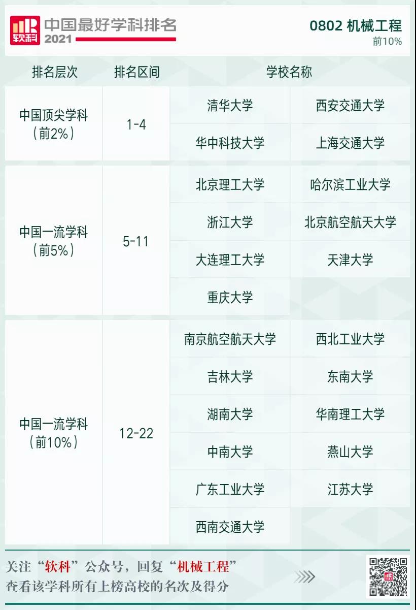 動力工程及工程熱物理學(xué)科排名前10%的高校: