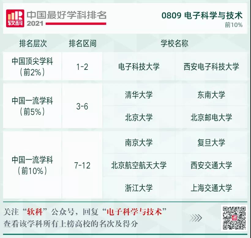 電子科學(xué)與技術(shù)學(xué)科排名前10%的高校: