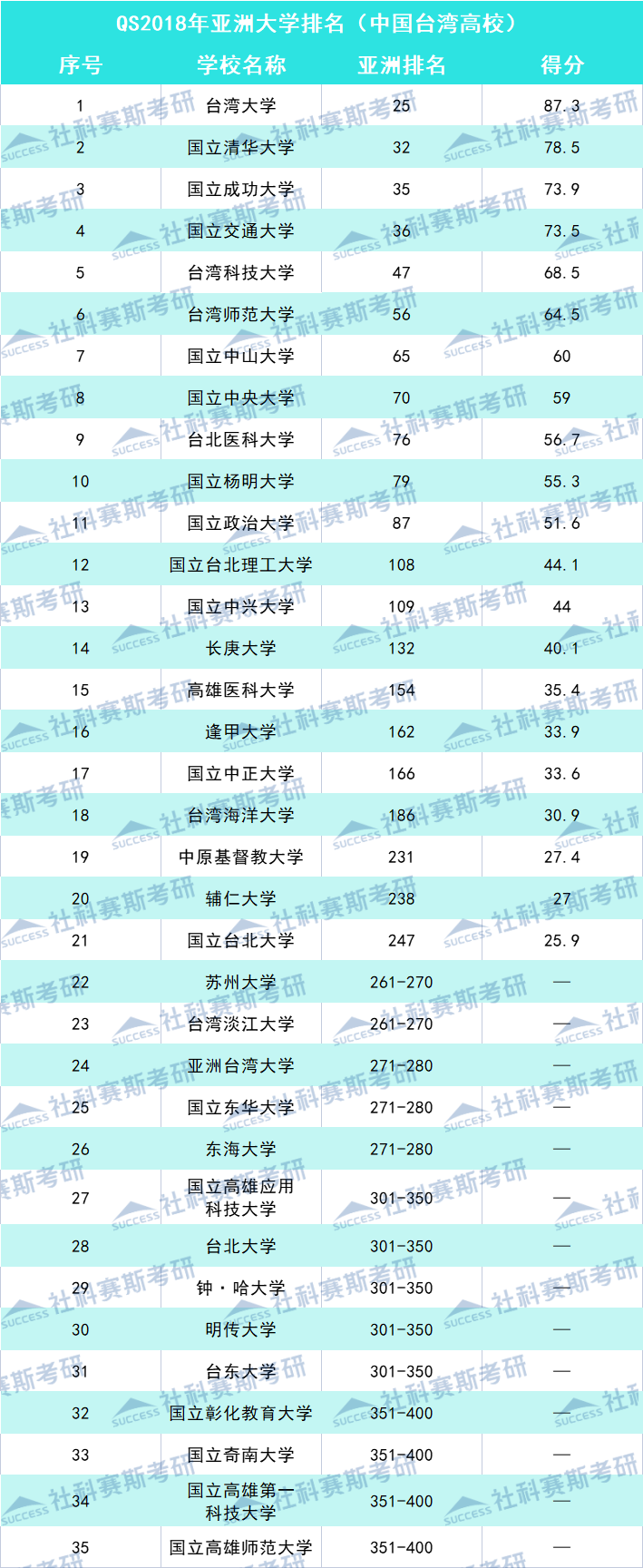 QS發(fā)布了2018亞洲大學(xué)排行榜(QS University Rankings Asia 2018),來自亞洲不同國家和地區(qū)的400+所高校上榜。中國140+所大學(xué)進(jìn)入亞洲400強(qiáng),數(shù)量亞洲第一。