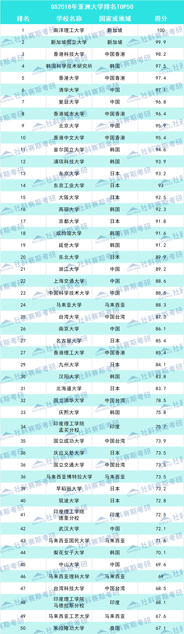 QS發(fā)布的2018亞洲大學(xué)排名中,中國、日本、韓國、新加坡高校表現(xiàn)強(qiáng)勢,其中更是有三所中國高校進(jìn)入亞洲TOP10。