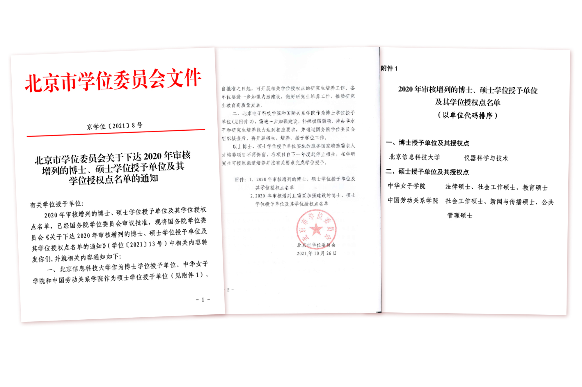 近日,根據(jù)《北京市學位委員會關(guān)于下達2020年審核增列的博士、碩士學位授予單位及其學位授權(quán)點名單的通知》(京學位〔2021〕8號),