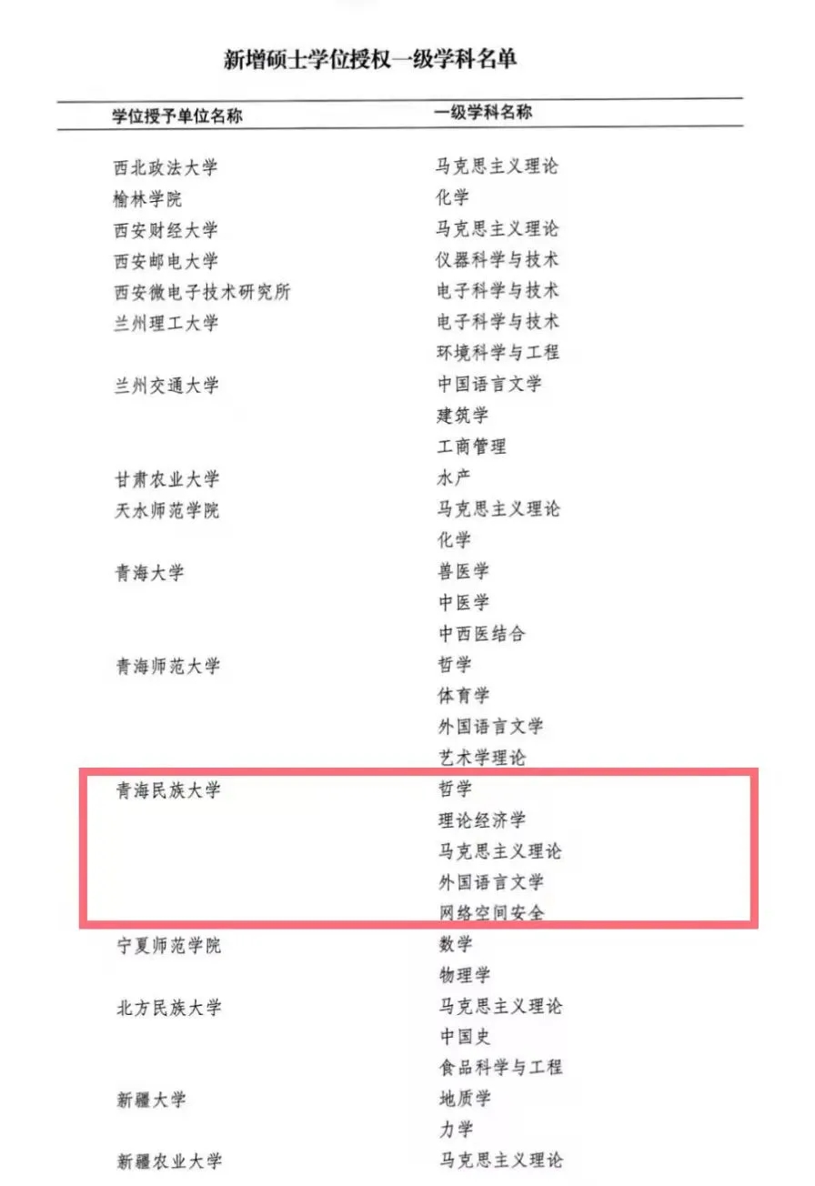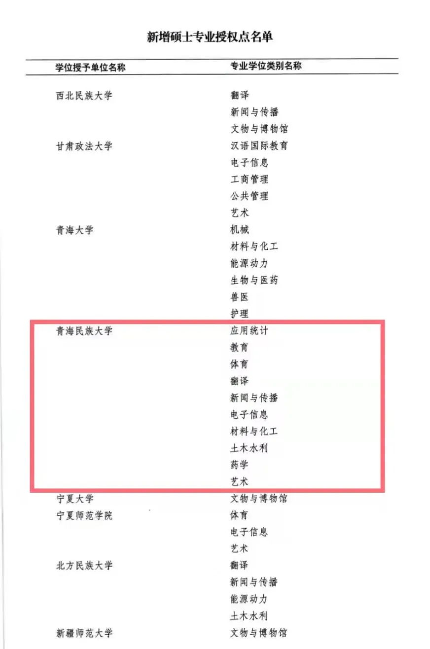 2020年新增碩士點(diǎn):青海民族大學(xué)成功獲批15個碩士學(xué)位授權(quán)點(diǎn)”的全部內(nèi)容,想了解更多相關(guān)信息,請持續(xù)關(guān)注本網(wǎng)站。