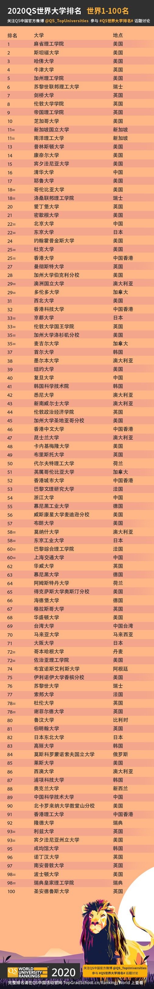 全球高等教育權(quán)威研究機(jī)構(gòu)QS Quacquarelli Symonds 發(fā)布2020 QS世界大學(xué)排名!