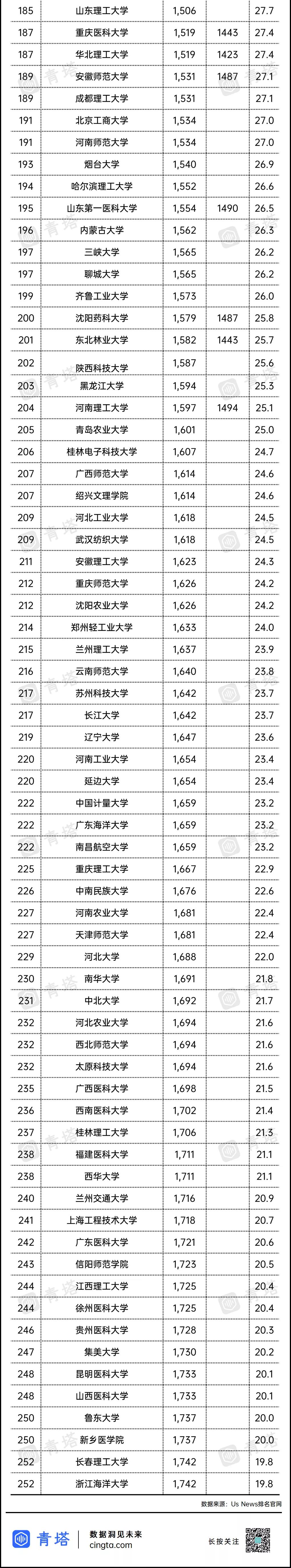 2022年US News世界大學(xué)排名中國(guó)高校的入圍情況如下(中國(guó)地質(zhì)大學(xué)、中國(guó)礦業(yè)大學(xué)、中國(guó)石油大學(xué)未區(qū)分兩地辦學(xué)情況):