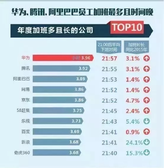 先來看一下2018年年度加班多且長的公司TOP10,從圖中可以看到互聯(lián)網(wǎng)行業(yè)是996的領頭羊。雖然說上榜企業(yè)加班時間長,但是這些企業(yè)也是在國內(nèi)薪資待遇十分優(yōu)厚的??捎械墓敬龈簧?,996的步伐卻從沒停過,同學們在求職時要擦亮眼睛。
