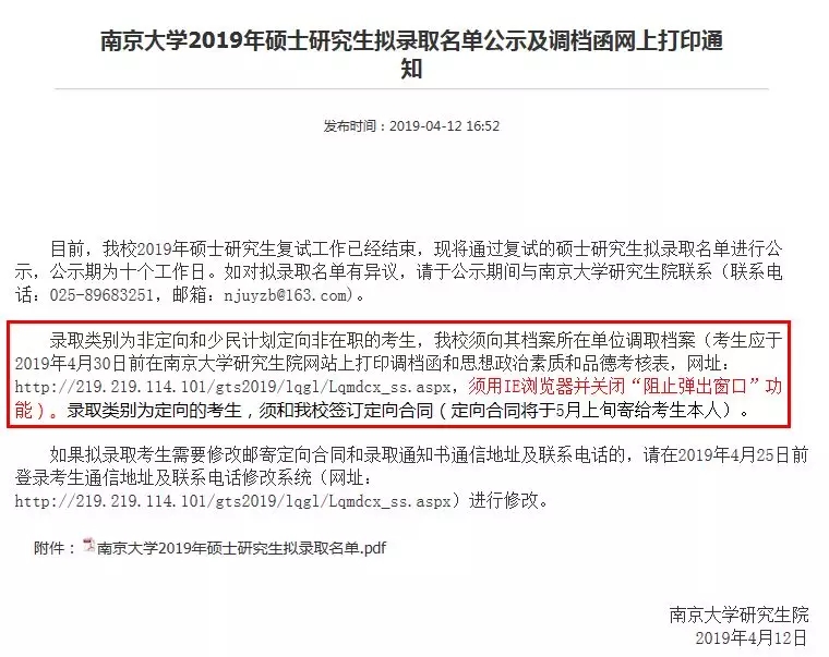 目前,已有學(xué)校發(fā)布關(guān)于調(diào)檔函的相關(guān)通知。例:南京大學(xué)研究生院官網(wǎng)4月12日通知,如下圖:
