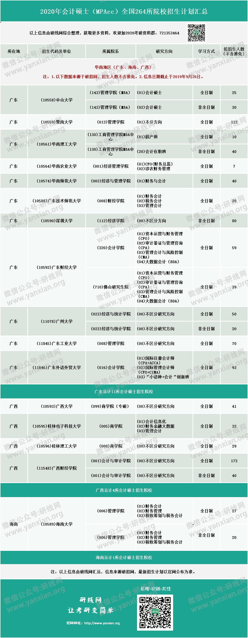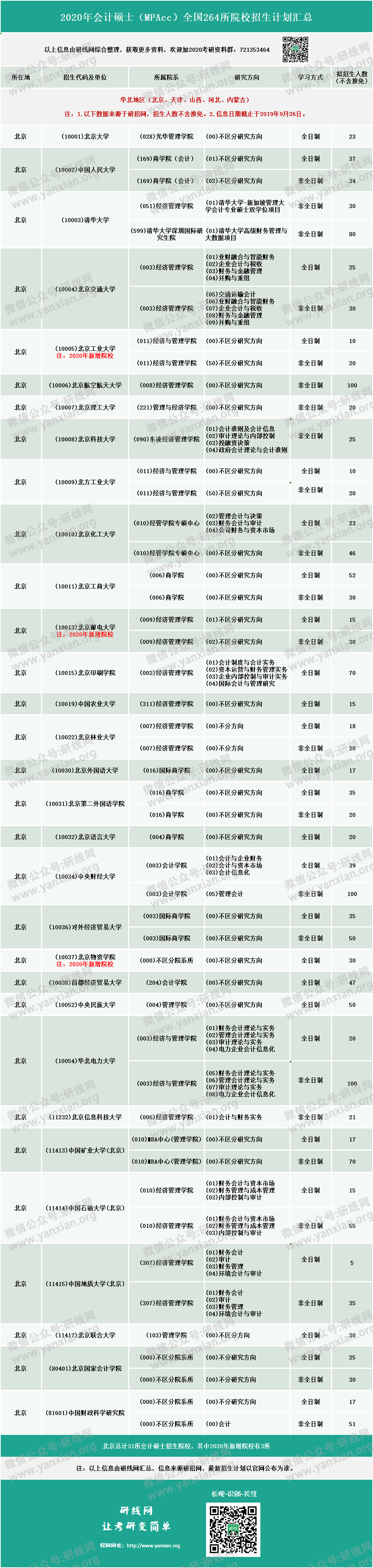 【2020年會計碩士(MPAcc)全國招生信息匯總】(即:華北、華東、華中、華南、東北、西南、西北)連載一!