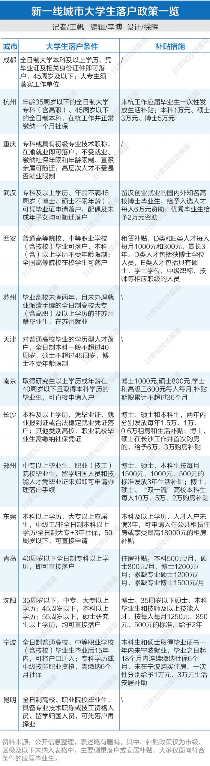 在近幾年的人才爭(zhēng)奪中,以新一線城市為代表的熱點(diǎn)地區(qū),普遍將關(guān)注點(diǎn)放在了大學(xué)生身上,陸續(xù)放寬這一群體的落戶門(mén)檻,有的還給予安居補(bǔ)貼、購(gòu)房?jī)?yōu)惠等。