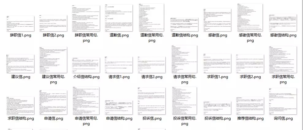 小作文一般為應(yīng)用型短文,具體有請求信、建議信、投訴信、感謝信、道歉信、推薦信、求職信辭職信等內(nèi)容。
