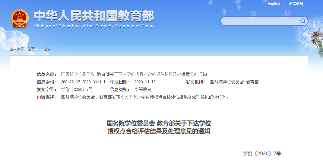 ?原標(biāo)題:國(guó)務(wù)院學(xué)位委員會(huì)教育部關(guān)于下達(dá)學(xué)位授權(quán)點(diǎn)合格評(píng)估結(jié)果及處理意見(jiàn)的通知