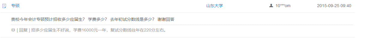 問:貴校今年會(huì)計(jì)專碩預(yù)計(jì)招收多少應(yīng)屆生? 學(xué)費(fèi)多少? 去年初試分?jǐn)?shù)線是多少? 謝謝回答