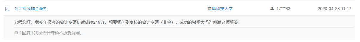 回答:我校會(huì)計(jì)專碩不接受調(diào)劑。