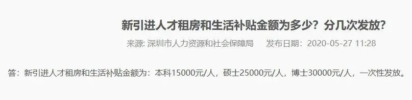 這意味著2021年5月底,深圳市人社局宣布,對(duì)2021年9月1日及之后新引進(jìn)人才不再受理發(fā)放租房和生活補(bǔ)貼。