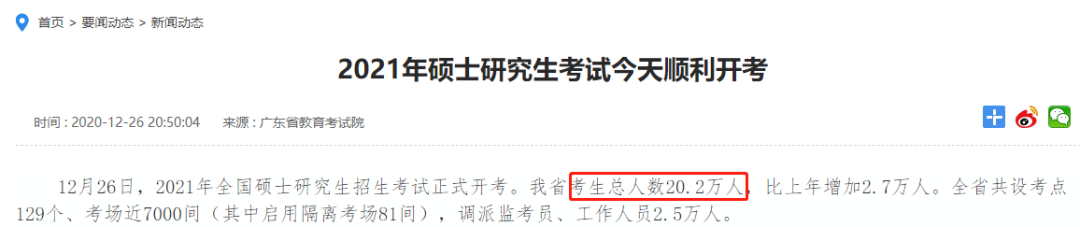 廣東省教育考試院:2021年,廣東省考生總?cè)藬?shù)為20.2萬(wàn)人,比上年增加2.7萬(wàn)人。